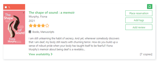 Titles that have been reviewed feature orange stars under their heading and can easily be identified in the search results. Reviews are not just limited to books: if it’s in our collection, you can review it.